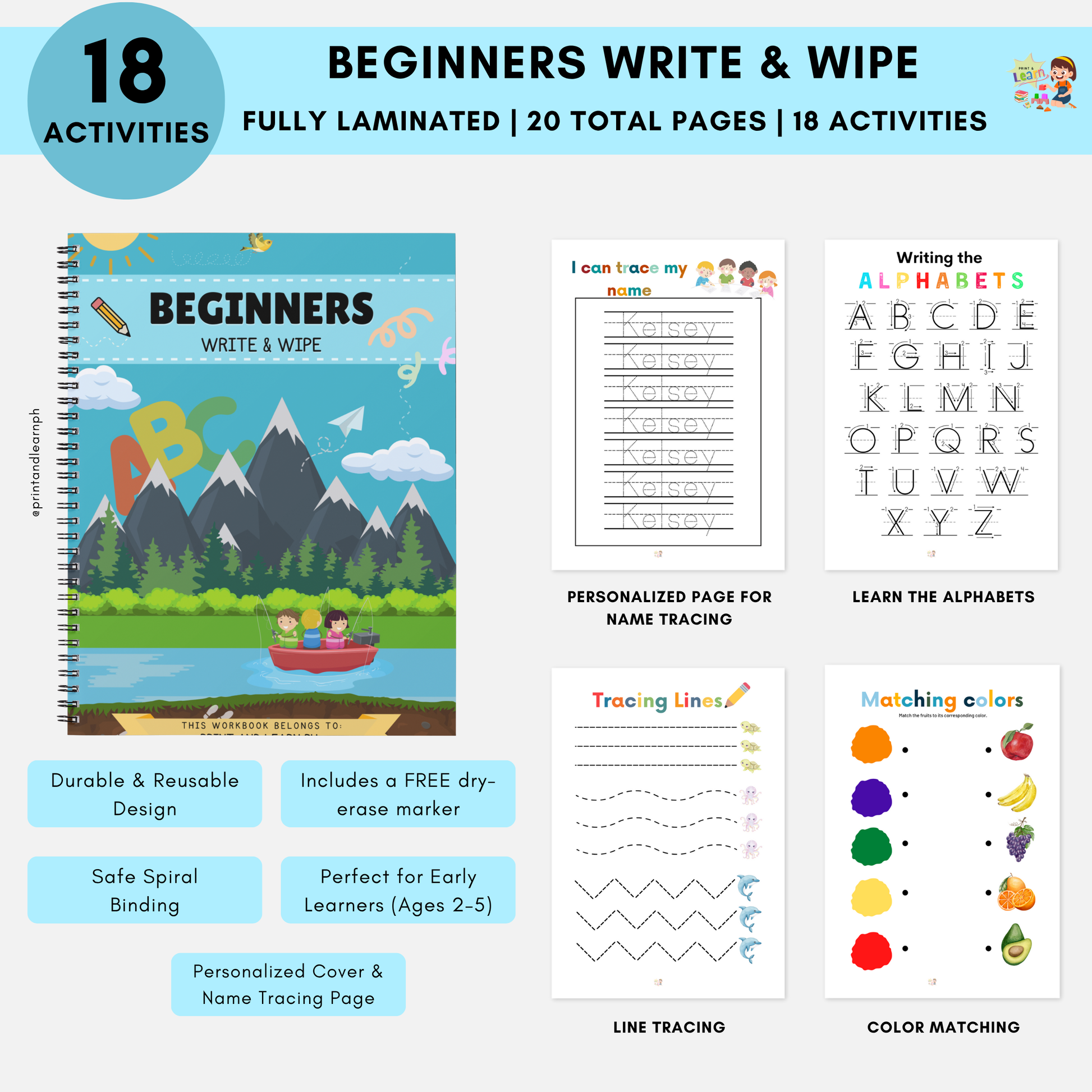 ๐ Perfect for toddlers aged 2 and up, this wipe-clean activity book offers fun and interactive practice with tracing, shapes, numbers, and personalized name writing.