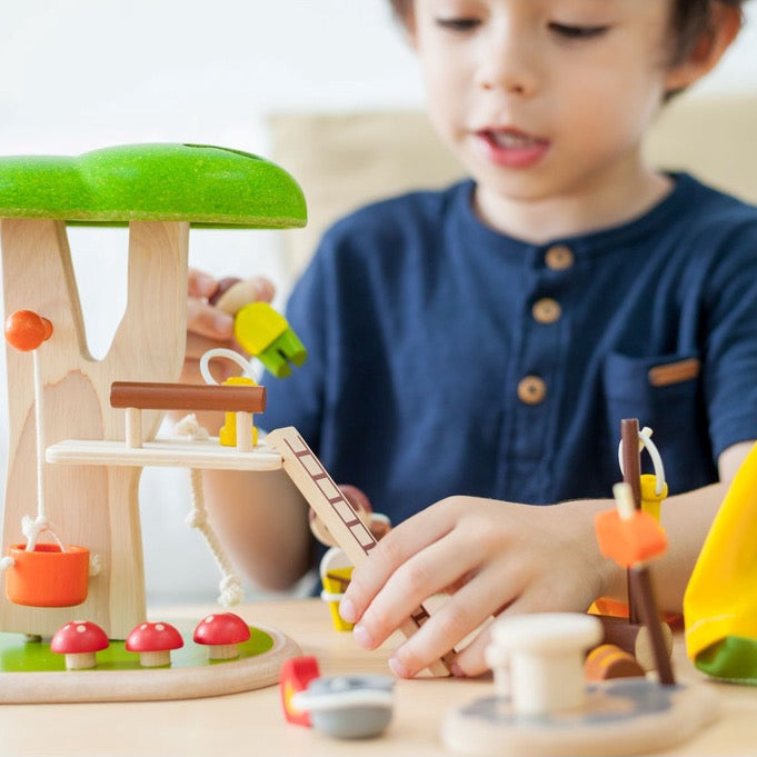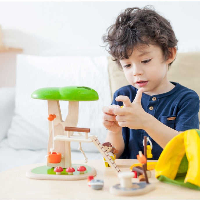 The set also includes fun extras such as a figure, a squirrel, three mushrooms, and a chest, adding excitement to playtime. The Tree House sparks your child's imagination and encourages exploration with coordinating features like a rope tree swing, a lantern, and a table set.