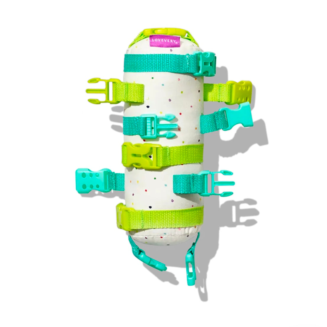 The Buckle Barrel: Keep busy with no-pinch buckles while building hand strength and practicing bilateral coordination on this cotton pillow.