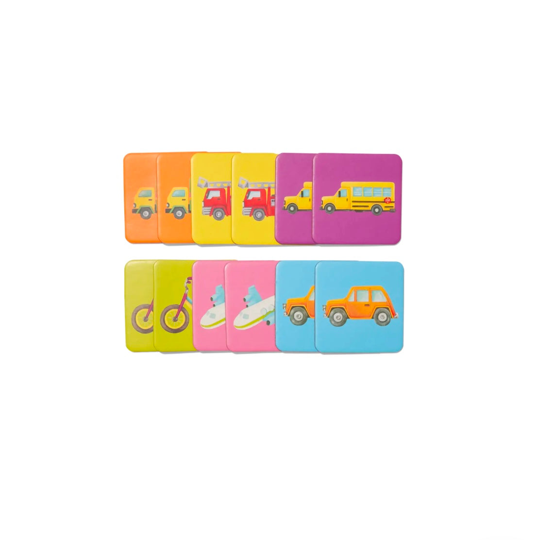 Things That Move Memory Game: Match buses, trucks, and planes while remembering where they are.